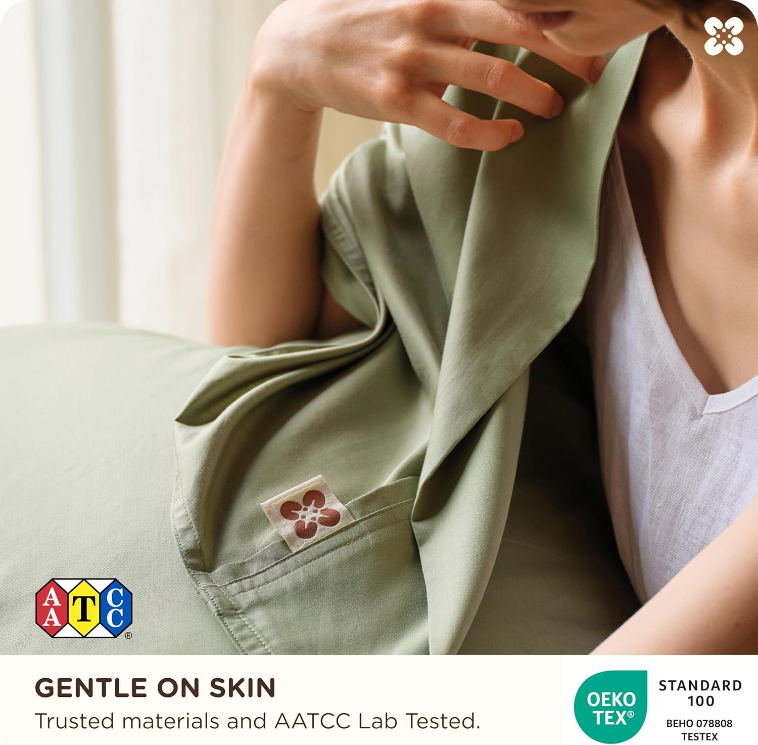 Bedsure Cooling Sheets, Rayon Derived from Bamboo & Cotton Blend, GentleSoft, Breathable, Queen Sheet Set, Deep Pocket Up to 18 Inches, Hotel Luxury Bedding for Hot Sleepers, Tea Green