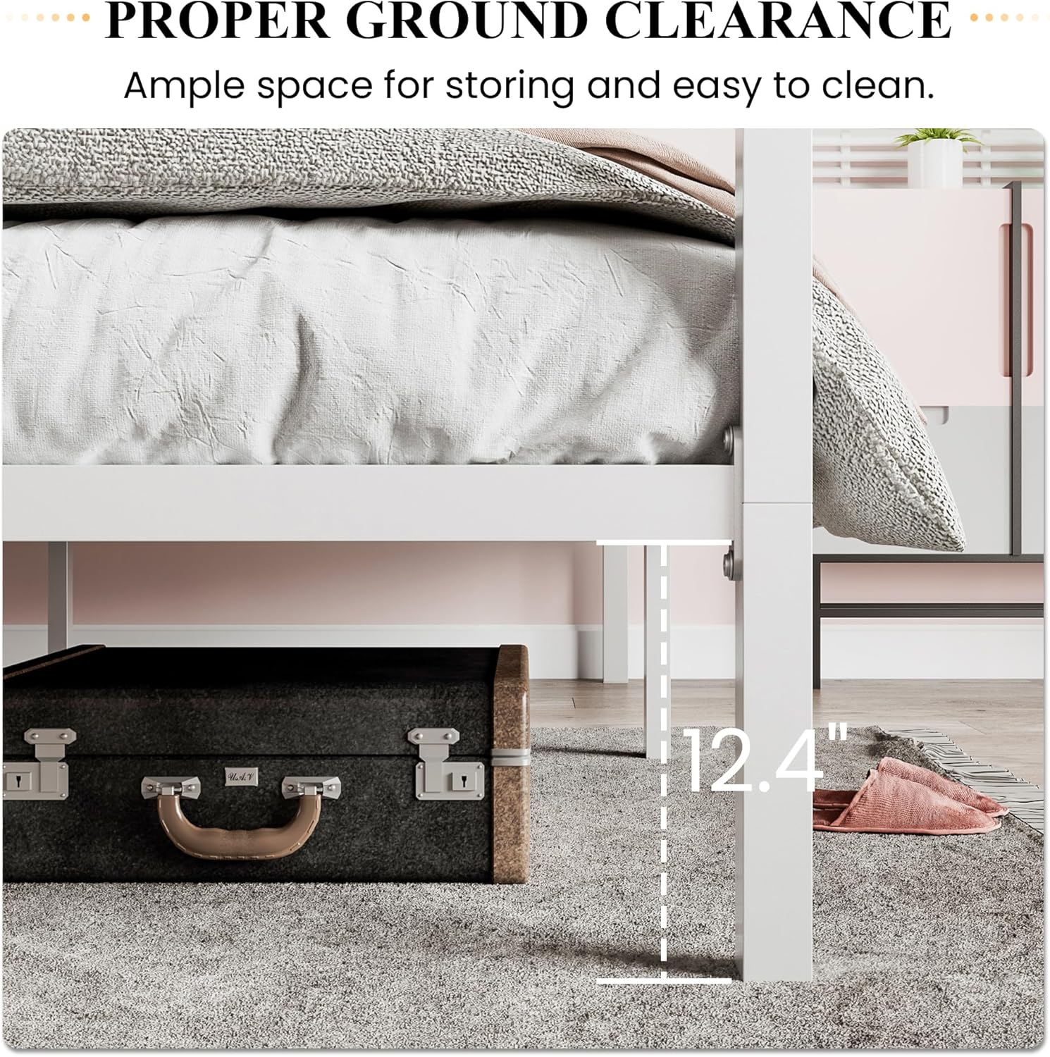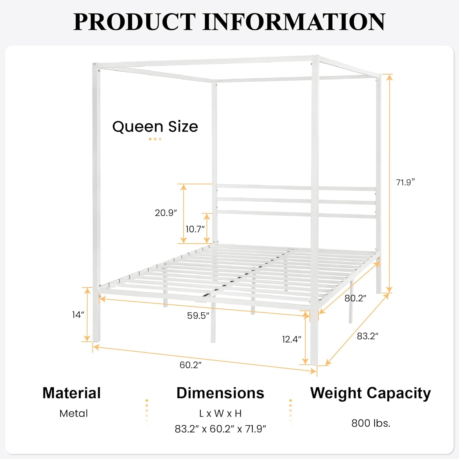 SHA CERLIN Metal Canopy Bed Frame Queen Size/Mattress Foundation with Metal Slats Support/No Box Spring Needed/Easy Assembly/White